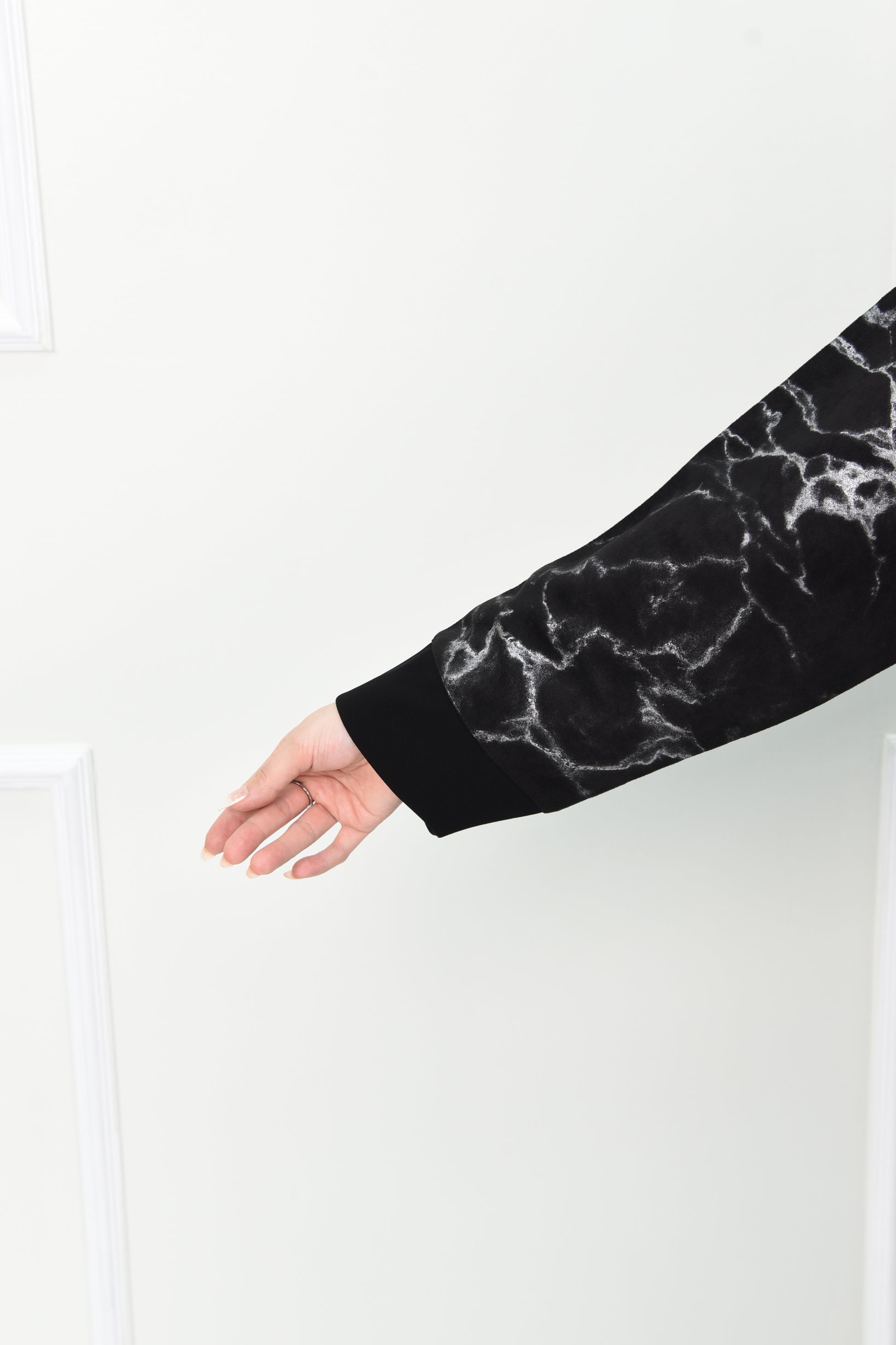 Black Marble-Patterned Abaya with Modern Metallic Clasp